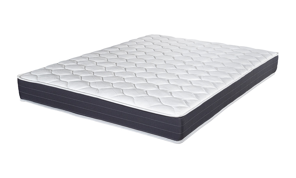 H.21 cm. Suspension 672 ressorts ensachés PhysioSense (en 160×200). Carénage polyuréthane haute densité. Plateau supérieur et inférieur ouate 100% polyester recyclée Ebafill 600g/m2. Platebande déco matelassée sur nappe polyester. Coutil stretch 100% polyester. Certifié Oeko-Tex.